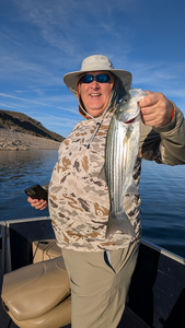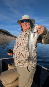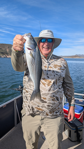 Beautiful Lake Pleasant striped bass making the day!